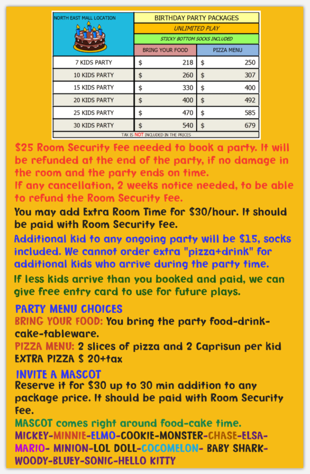 North East Mall Location Party packages